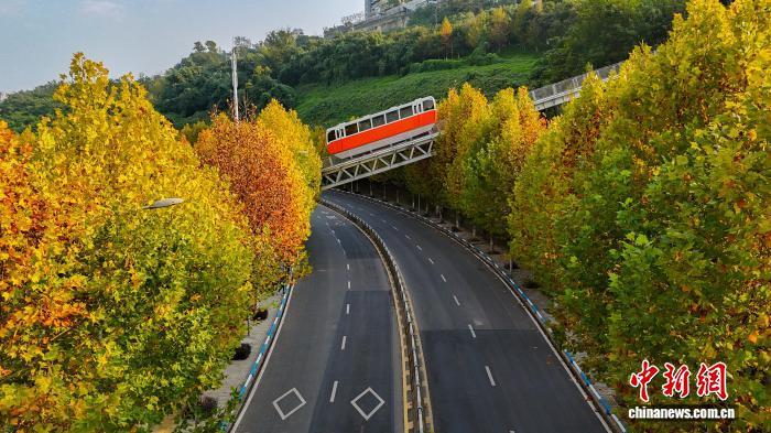 重庆:缆车穿梭梧桐林绘就一幅浪漫“油画”