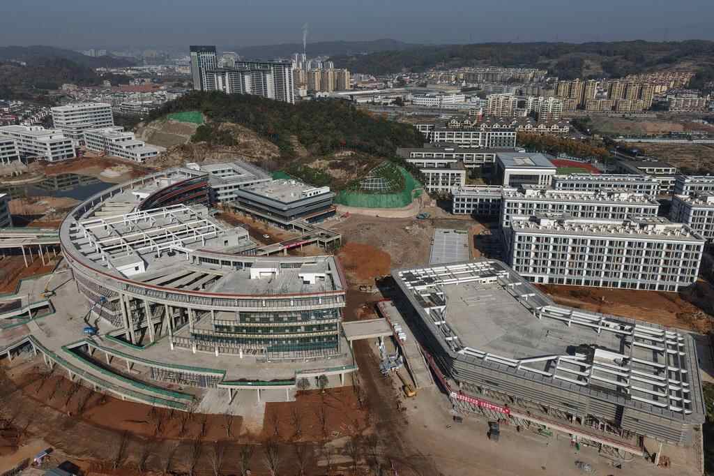 建设中的浙江工业职业技术学院新昌学院(11月26日摄,无人机照片)。