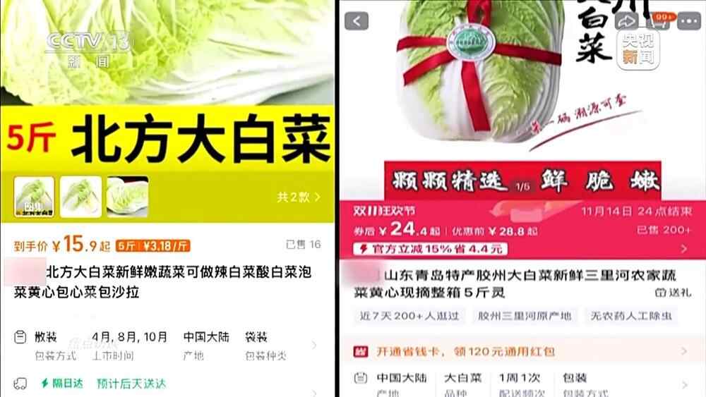 比如一棵普通的大白菜大概五六块钱,而一棵地理标志产品的胶州大白菜就可以卖到五六十块钱。记者发现,在电商平台,打着地理标志产品的旗号售卖胶州大白菜的商家非常多。