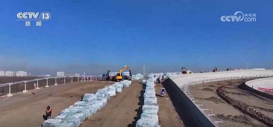 在冰雪大世界园区,储藏了10多个月的存冰正分批装车,经检验合格后陆续运抵施工现场,全力保障超级冰滑梯与主塔的建设进度。今年的超级冰滑梯设计融入万里长城的城墙与烽火台元素,“冰长城”造型气势磅礴,建成后将成为兼具观赏性与互动性的新地标。据了解,超级冰滑梯的滑道总数保持24条的高配置,尽量减少游客排队时间,同时保留521米超长滑道。气象部门预报显示,未来几天当地自西向东有一次降雪过程,低温环境为冰景建筑施工提供了有利条件,施工方已做好准备,确保工程稳步推进。