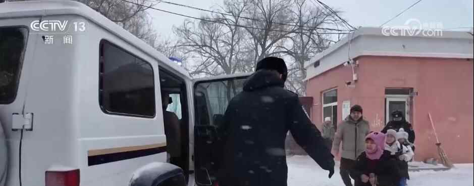 新疆哈密:风吹雪能见度低 民警护送学生平安到家