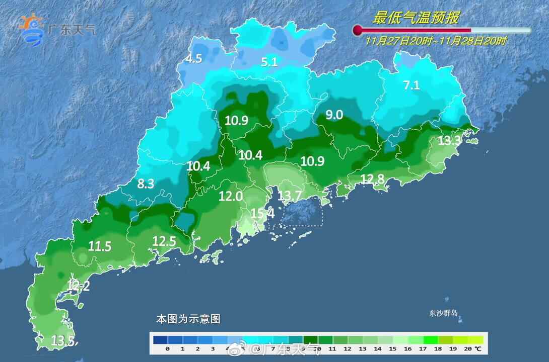 @广东天气 预计,28日起控制广东的冷高压逐渐减弱。28日-29日广东大部晴间多云,天气干燥,昼夜温差大,早晚清凉,早晨粤北部分市县有5℃以下低温,局部有霜冻;30日广东云量增多,中南部市县有分散小雨,早晨大部最低气温明显回升。