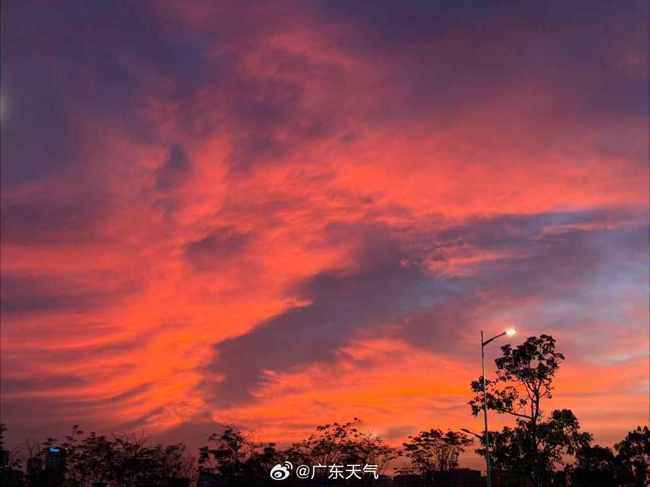 近期,到访广东的冷空气是一波接一波,此外还有台风的加持,“晴冷”天气一直在控场。得益于这种秋高气爽的天气,昨天(11月27日)晚上,广东壮丽的晚霞又刷屏了。