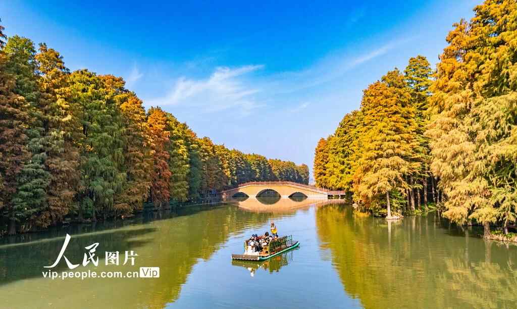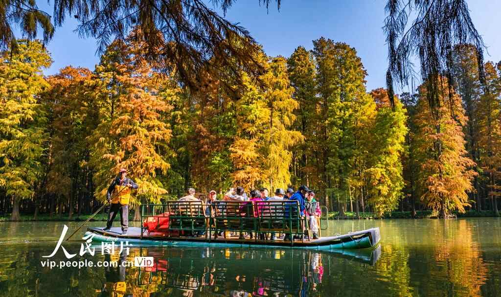 初冬时节,江苏兴化里下河国家湿地公园层林尽染、色彩斑斓,如画美景吸引不少游客前来游玩。周社根摄(人民图片网)