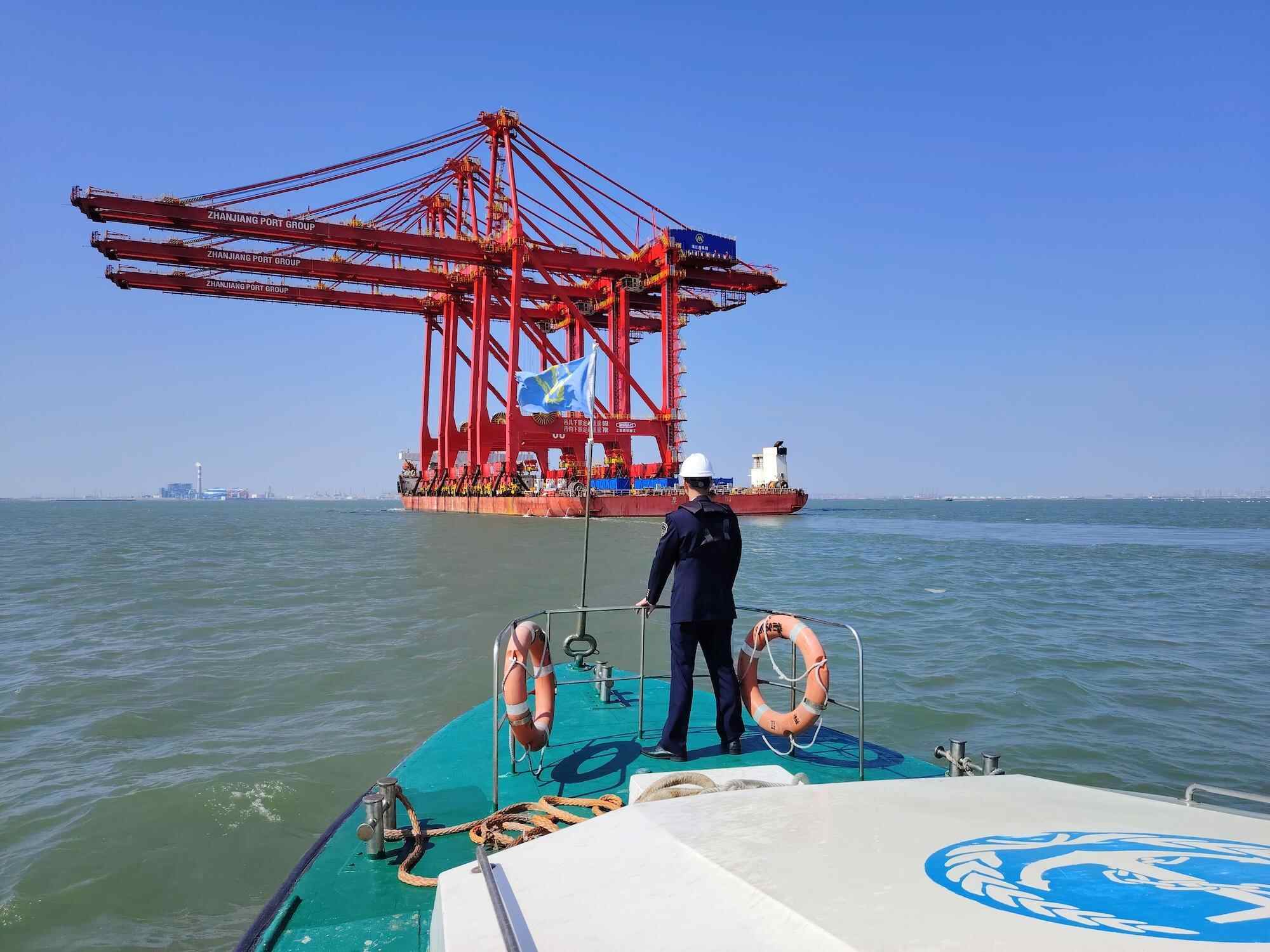 近日,在湛江海事局“海巡09056”轮和“海巡09058”轮的护航下,“厚德198”轮载运3台超大型集装箱码头岸桥安全进港,湛江港宝满港区集装箱码头一期扩建工程项目即将进入岸桥设备安装调试工作阶段,为湛江港集装箱业务扩容升级按下“加速键”。
