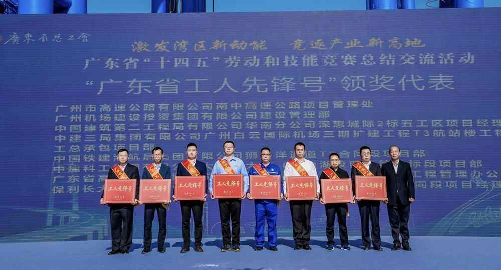 活动现场播放了广东省“十四五”劳动和技能竞赛成果汇报片,通报了先进集体和先进个人表彰决定。出席活动的领导为一批“十四五”时期涌现出的先进单位和个人代表颁奖,为党员先锋队、工人先锋号、青年突击队授旗,并慰问一线建设职工。
