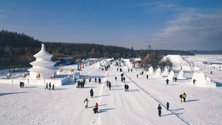 游客在净⽉雪世界参观游览。新华社记者 许畅 摄