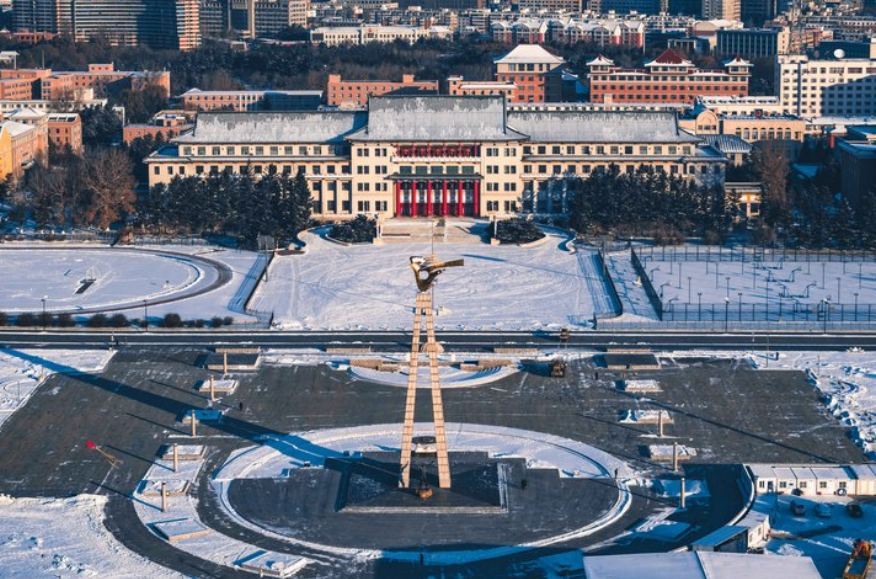 这是雪后初晴的吉林⼤学地质博物馆。新华社记者 许畅 摄