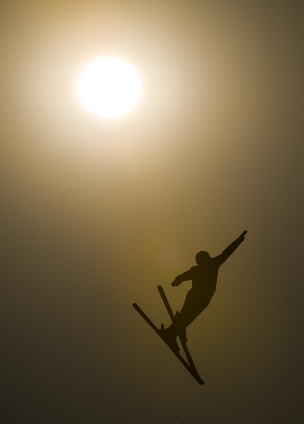 国际雪联⾃由式滑雪空中技巧世界杯中国站⽐赛在⻓春莲花⼭滑雪场进⾏。新华社记者 许畅 摄