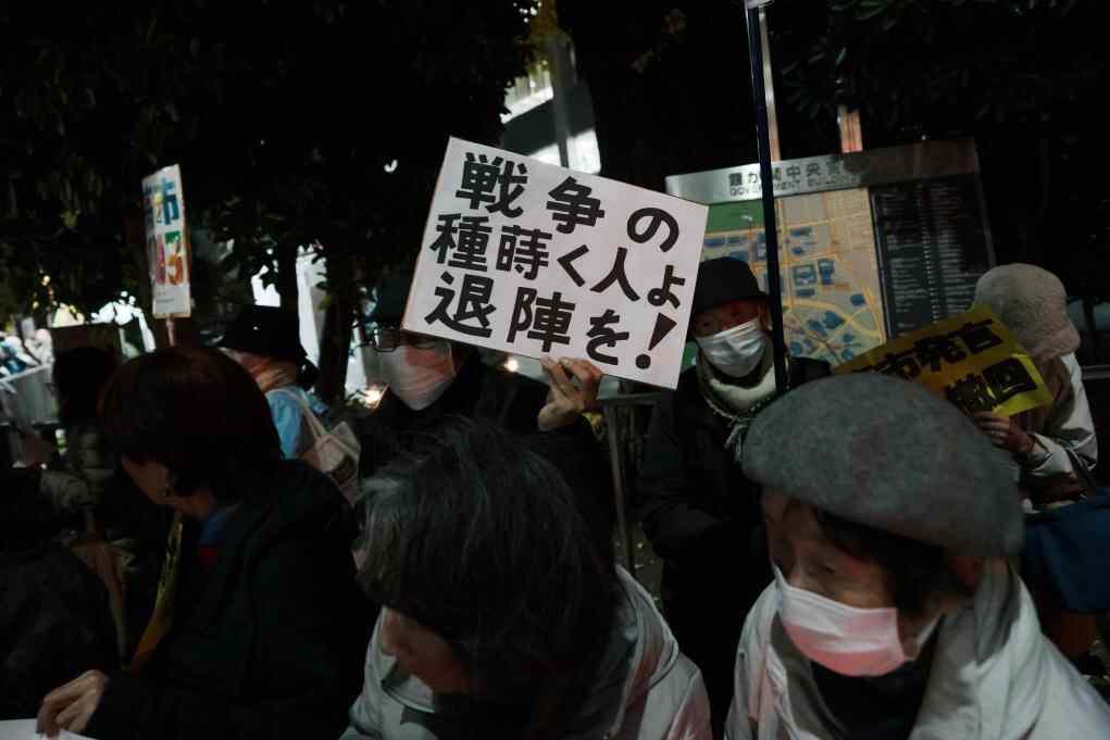 25日傍晚,雨后的东京街头寒风阵阵。18时许,日本首相官邸前聚集起大量民众。