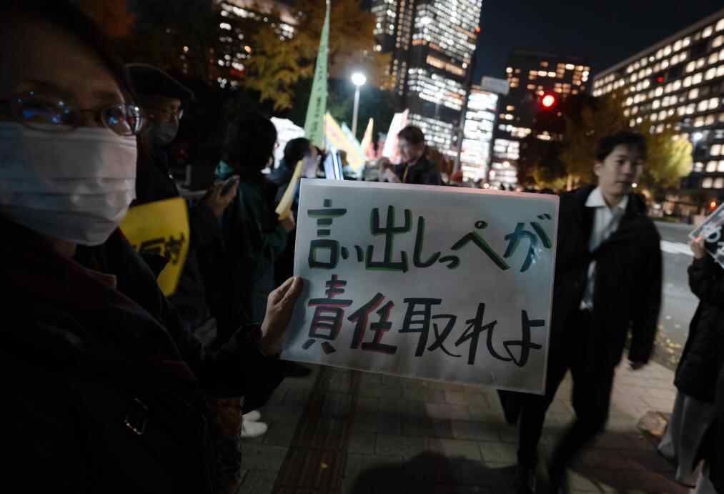 新华社东京11月26日电 特写|寒风中,抗议声在日本首相官邸前再次响起
