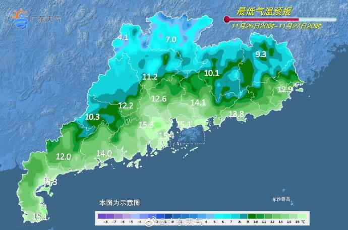 ◆局地或有霜冻!新冷空气今起影响广东,早晚气温继续下降。预计27日,广东大部晴间多云。最低气温:粤北、肇庆和云浮5~9℃,南部沿海市县14~16℃,其余市县10~14℃。详情-->