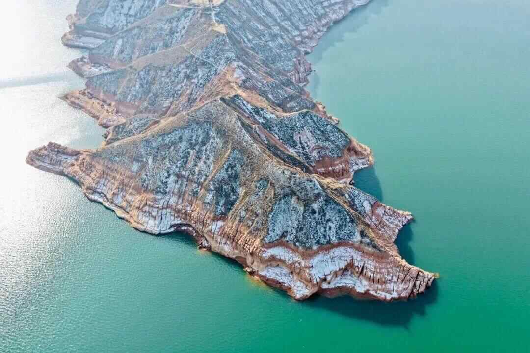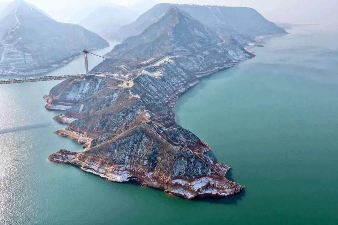 突然,前面烟波浩渺。李师傅在一路边平台停车,大家下来,观澜刘家峡水库。水面旷阔无垠,山体刚劲崛强。程麟升起无人机。后照片发来,脚下一山化为一挺巨大的鳄鱼精,威武临伏碧波上,气呵而粼水荡漾,躯运而大地震颤。刘家峡大桥横跨山峡最窄处,高不可测,仰视之下,头晕目眩。