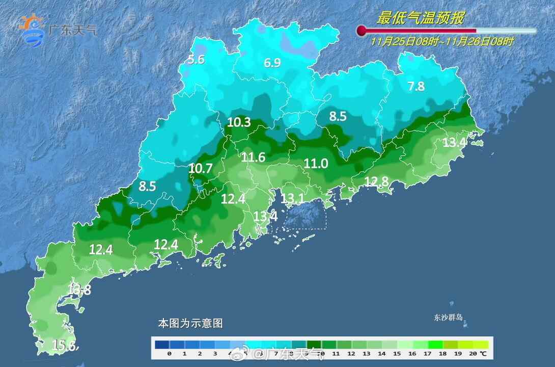 ◆25日,广东南部沿海市县多云转晴,其余市县晴到少云。最低气温:粤北偏北市县9~12℃,南部沿海市区16~19℃,其余市县12~15℃。