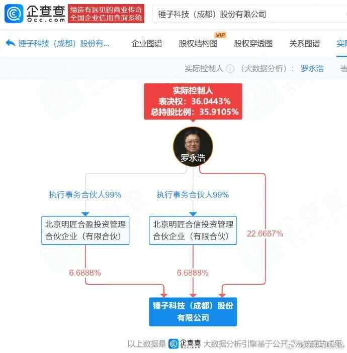 企查查信息显示,锤子科技(成都)股份有限公司成立于2012年5月,法定代表人为管志良,注册资本约3150万元,经营范围包含计算机软硬件技术开发、技术服务、生产手机等,由罗永浩、成都东方广益投资有限公司等共同持股。