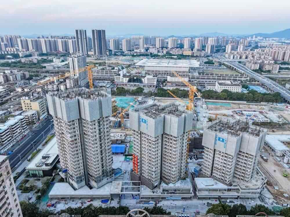 广州北站中旅TOD综合体项目位于花都区广州北站东侧,总建筑面积约15万平方米。规划主要包括3栋44层超高层住宅、1栋4层幼儿园、1栋2层服务中心、沿街商业及公建配套等。目前,3栋塔楼主体结构最高已施工至24层;幼儿园及沿街商铺已顺利完成封顶。二次结构与装饰装修工程已全面展开,并随主体进度有序穿插施工。