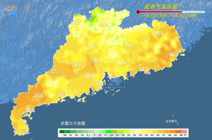 ◆预计24日,粤北、粤西和珠江三角洲市县多云,局部有零星小雨,其余市县晴到多云。最低气温:粤北市县10~13℃,南部沿海市县15~19℃,其余市县13~15℃。