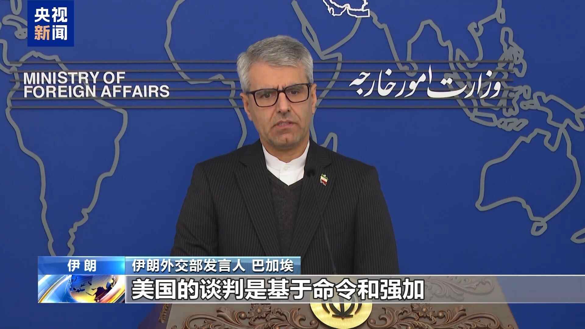 伊朗外交部发言人 巴加埃:美国的谈判是基于命令和强加,而不是基于互惠互利的传统外交,只要美国坚持这种做法,就不会形成有意义的谈判。