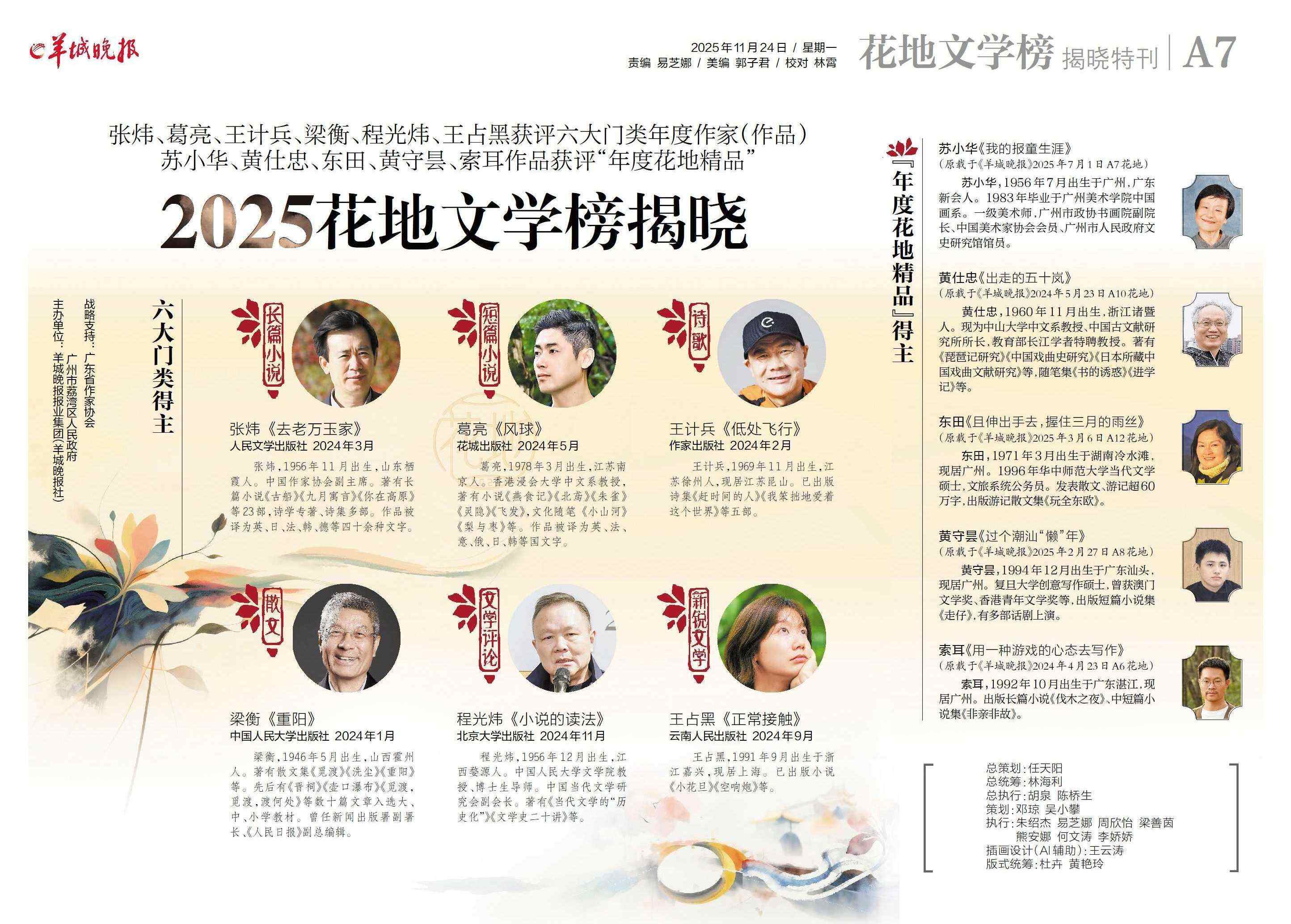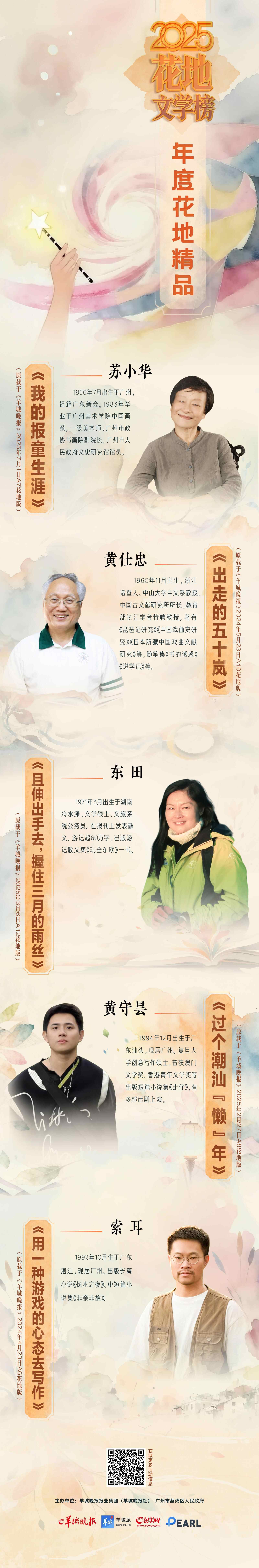 由羊城晚报报业集团(羊城晚报社)、广州市荔湾区政府共同主办,广东省作协战略支持的2025花地文学榜年度得主今日揭晓!