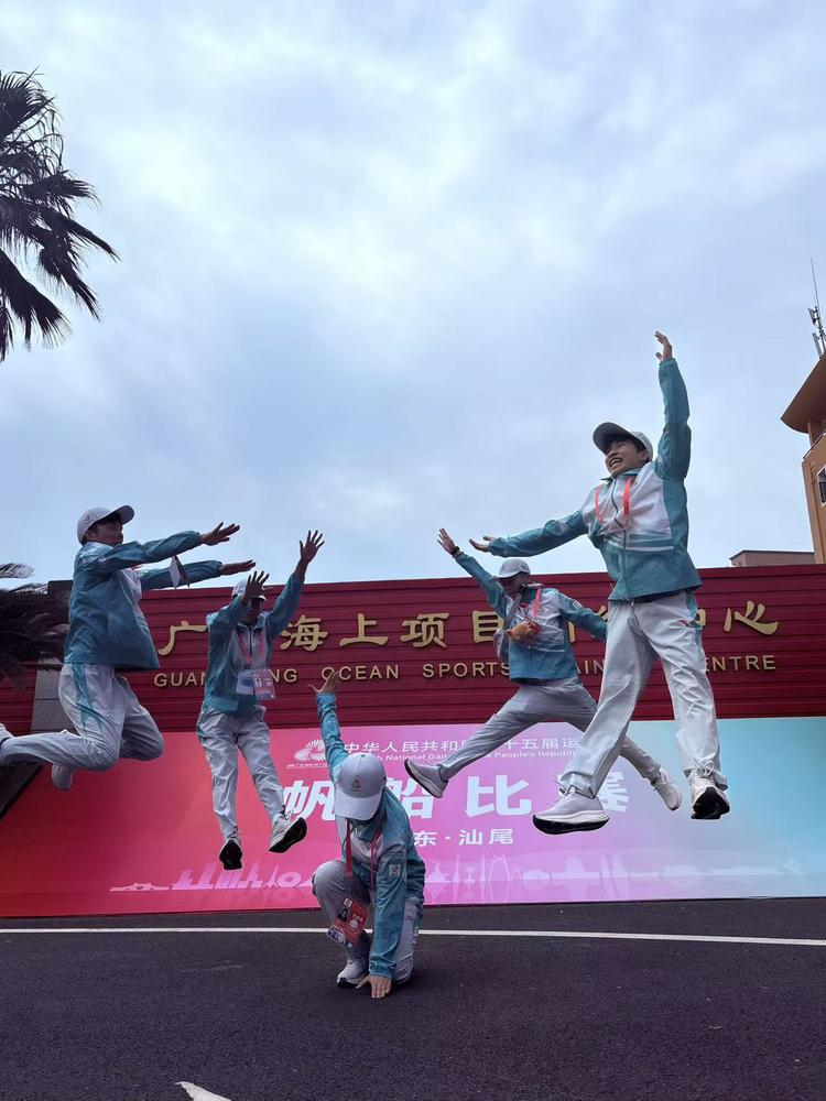 跨境赛事现场、小轮车赛场、排球馆、沙滩、颁奖台旁……哪里需要服务,哪里就会出现“小海豚”。他们沉稳协作的身影成为了全运会赛场上的坚实依靠。