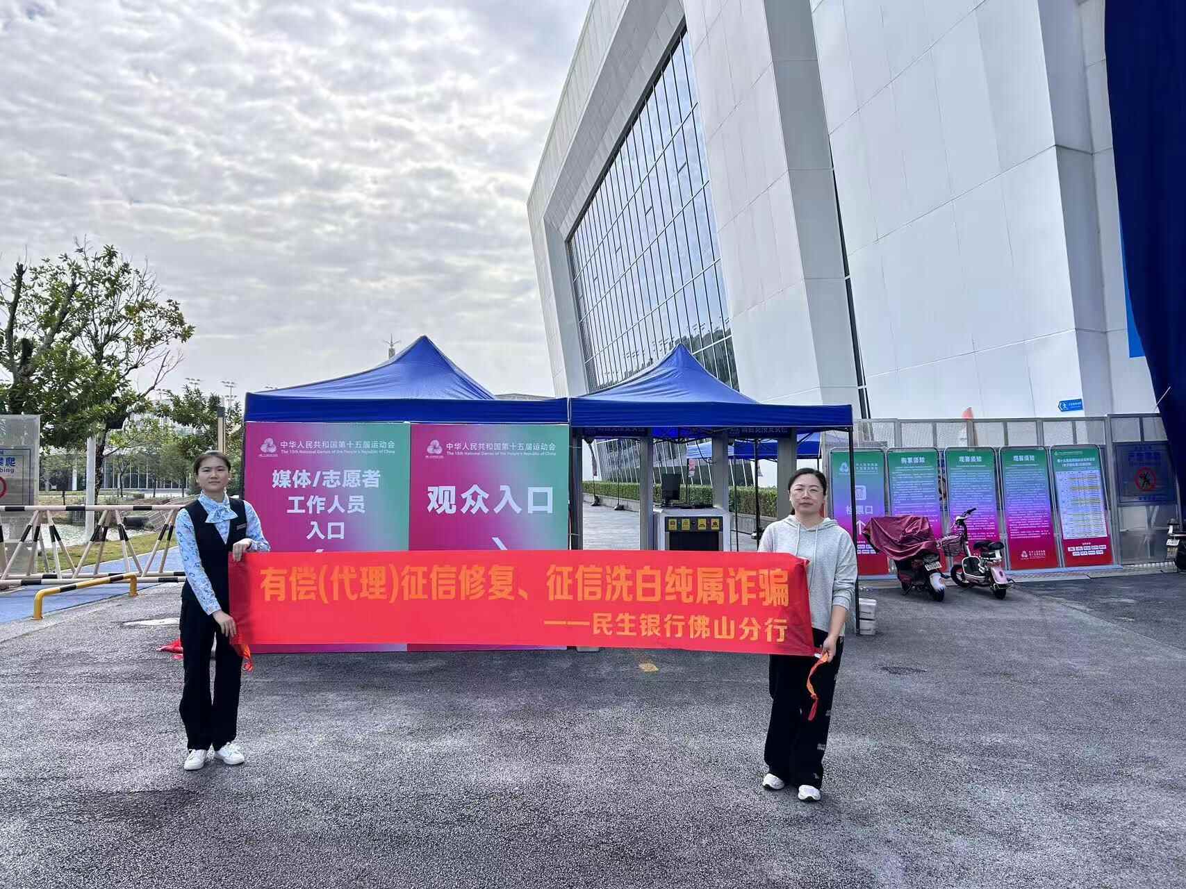为进一步扩大征信宣传的辐射范围,让信用知识触达更多赛事参与者,该行精心组建专业宣传团队,深入佛山岭南明珠体育馆、佛山顺德体育中心等全运会赛事场馆,开展征信专题宣传活动。在场馆周边设置征信宣传点,悬挂“征信服务全运 信用点亮湾区”主题横幅,向观赛群众派发征信知识宣传折页。工作人员运用生动形象的语言向观赛群众深入剖析“征信修复”诈骗案例,讲解如何维护良好的信用记录以及失信可能带来的严重后果,切实将信用理念传递到每一位参与者心中。