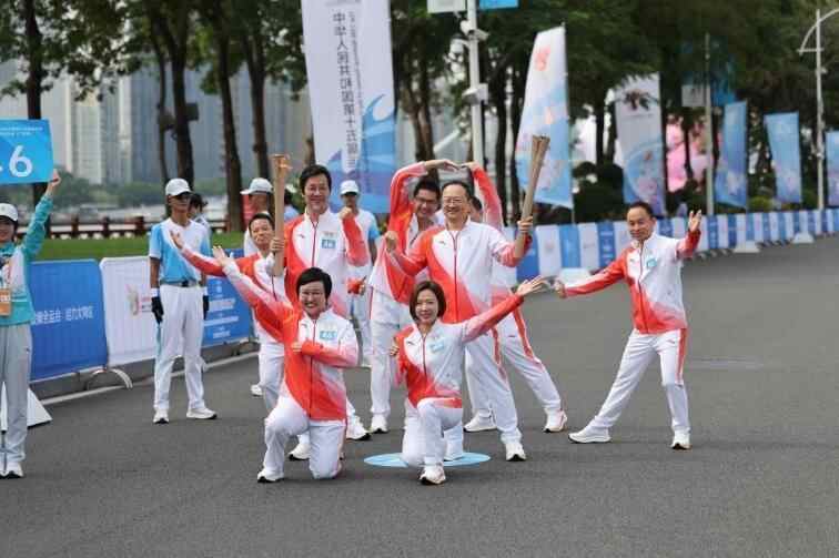 十五运会火炬传递广州站“城市合伙人”方阵主火炬手曹雪在火炬传递中。(文、图/广州日报新花城记者:栾晓森、陈忧子)
