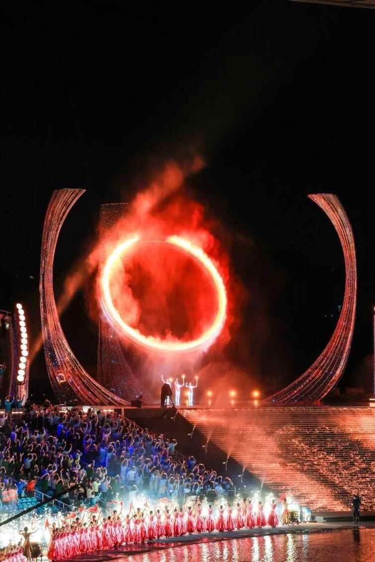 开幕式文艺表演环节,粤剧、英歌、醒狮、龙舟等岭南文化元素相继登台,大放异彩。粤港澳三地粤剧名家共同表演了《彩云追月》,三位演出者分别是以经典唱腔和舞台表现力著称的香港粤剧表演艺术家汪明荃,广东粤剧表演艺术家曾小敏,澳门青年粤剧演员、新生代粤剧传承人麦晓柔。舞台上,广州“小蛮腰”、香港维多利亚港、澳门大三巴等城市地标光影交织,共同绘就了一幅大湾区共生共荣的壮丽画卷。主火炬“天海之冠”以“天地人心、鼎立中华”为理念,其圆环造型再次强化了三地同心、共同托举的意象。火炬最终由广东的苏炳添、香港的张家朗、澳门的李祎三位优秀的运动员共同点燃。圣火燃起,欢呼声响彻云霄。