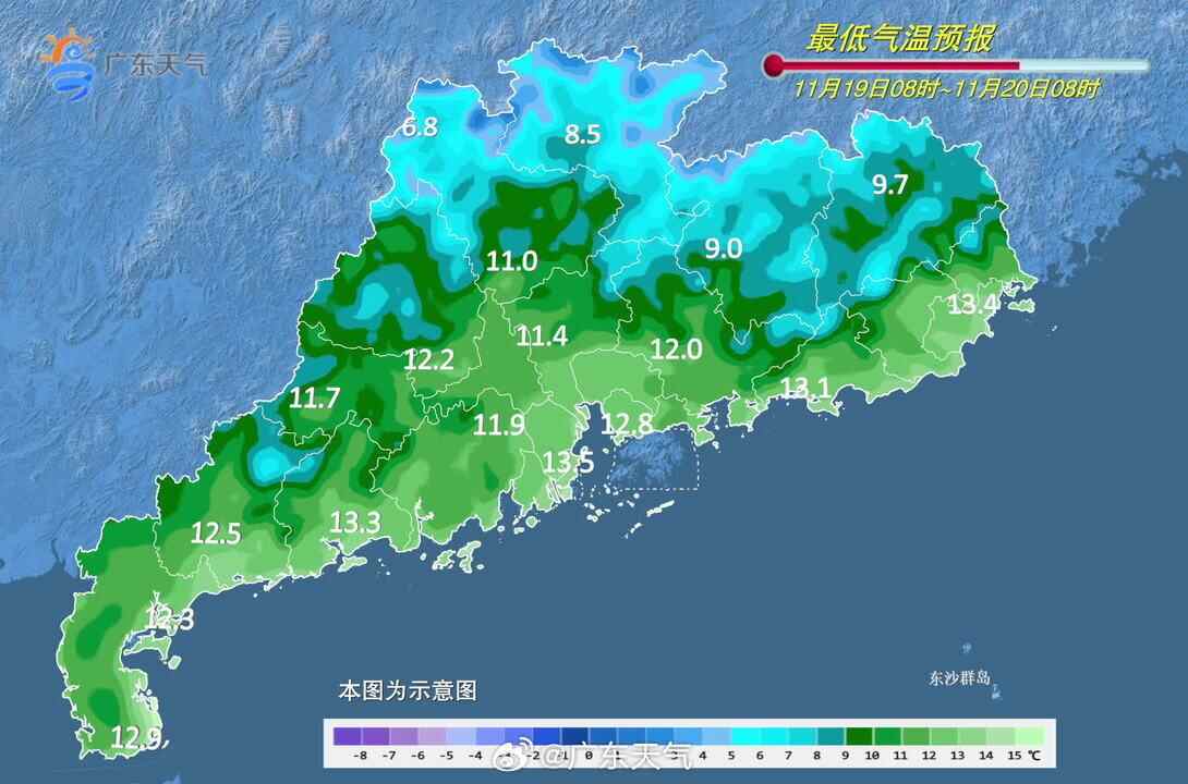 不过,这还不是最冷的。对广东来说,大部分市县过程最低气温将出现在20日早晨前后!小伙伴们注意防寒保暖。