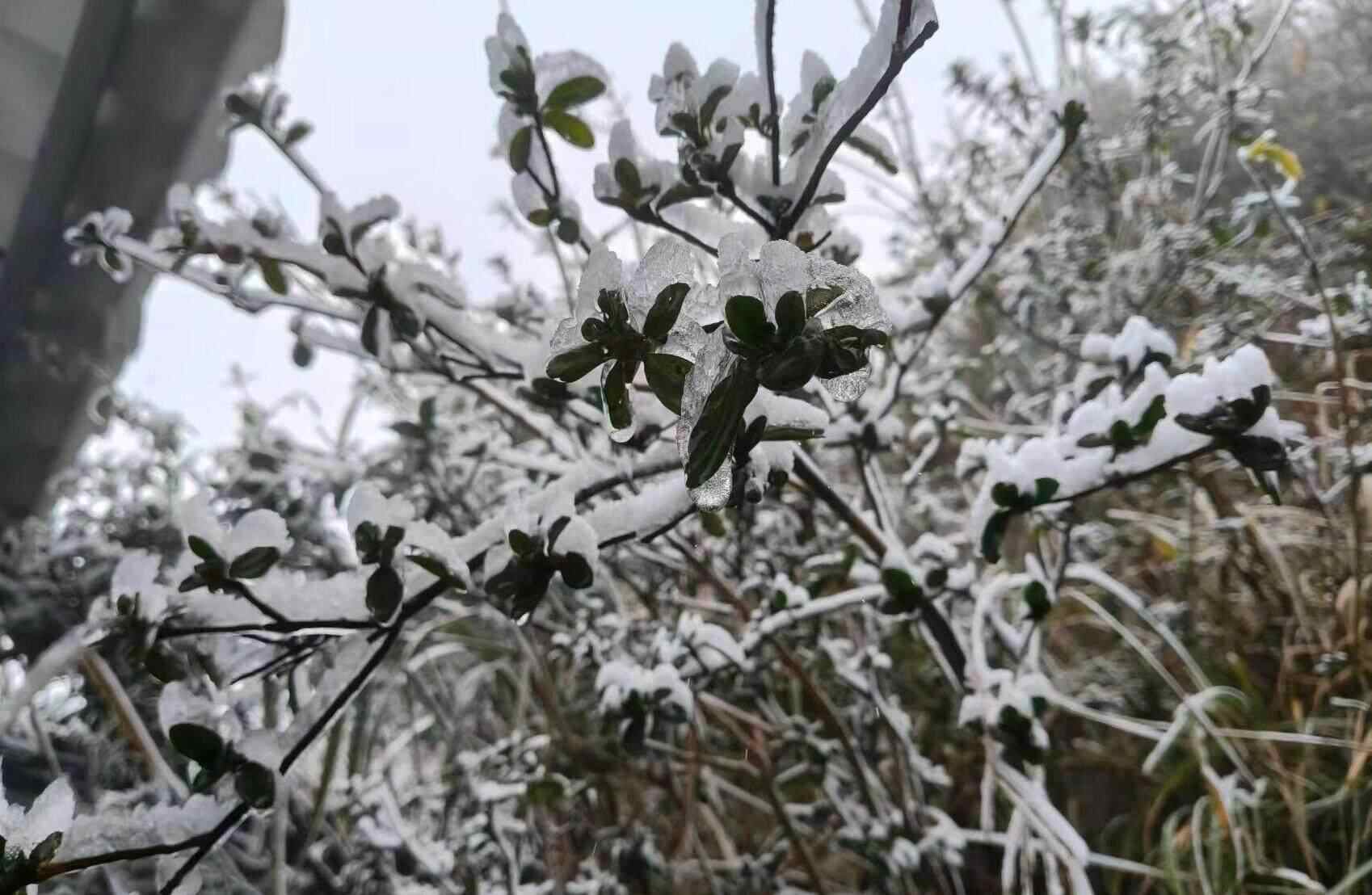冷到雾凇都挂上了。昨天早晨,清远及韶关的北部下降了7~9℃,粤北高海拔山区出现雾凇冰挂现象。
