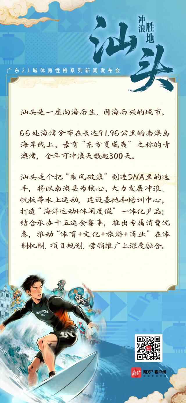 11月15日-18日,十五运会和残特奥会广东赛区执委会在广州主新闻中心连续举行系列发布会,邀请广东各地市人民政府相关负责人,介绍城市体育性格、赛事运行保障、体育产业等情况。一组“体育名片”解读广东21城体育性格→