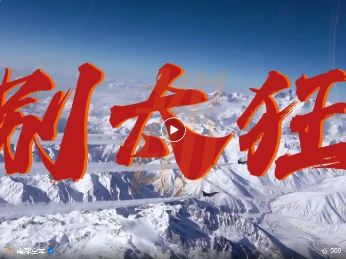 11月19日,南部空军发布rap《别太狂》。并配文:我和战机凌空一击,完美弹道,将它“干掉”。西南领空,由我捍卫,祖国山河,不容侵犯,空中较量,展露锋芒,敌人你们都别太狂。