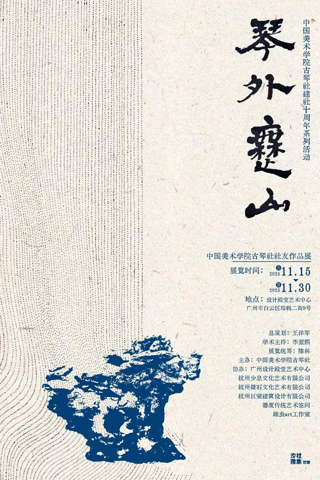 本次展览以“琴外无山”为题,希望借此精神象征,讨论当代青年艺术创作中“心境与物像”的多重关系。邀请了来自书法、国画、油画、版画、雕塑、摄影、漆艺、文物修复等不同专业的青年艺术家参与创作。展览试图建立一种宁静而连贯的观展节奏,让观者在作品之间获得一种由视觉转向内心的沉静体验。