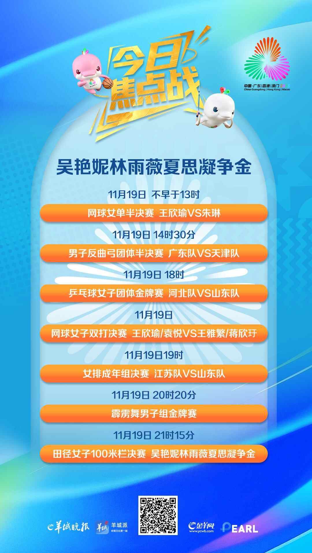 11月19日,十五运会正赛迎来第十个比赛日,从晋级悬念到奖牌归属,多项赛事上演精彩对决,田径、乒乓球、网球、排球、霹雳舞等项目将产生29枚金牌。
