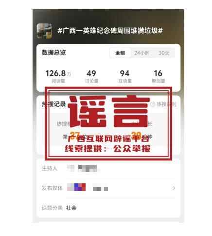近日,网络上出现“广西一英雄纪念碑周围堆满垃圾”的信息,并有媒体开设话题,引发关注和炒作。