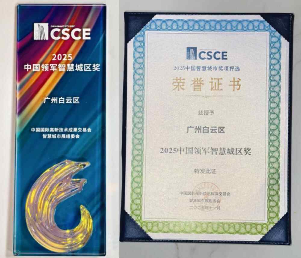 近日,在第27届中国国际高新技术成果交易会2025亚太智慧城市奖项评选颁奖典礼上,广州市白云区凭借在智慧城市建设领域的先进经验和突出成果,荣获“中国领军智慧城区”称号,成为广州市唯一连续6年获此殊荣的行政区。