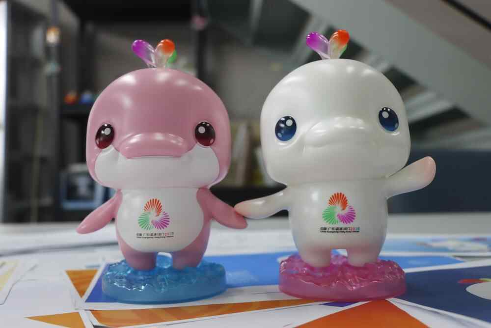作为粤港澳联合承办的本届全运会的吉祥物,它们以中华白海豚为原型,头顶木棉红、紫荆紫、莲花绿水柱,暗藏三地融合深意。
