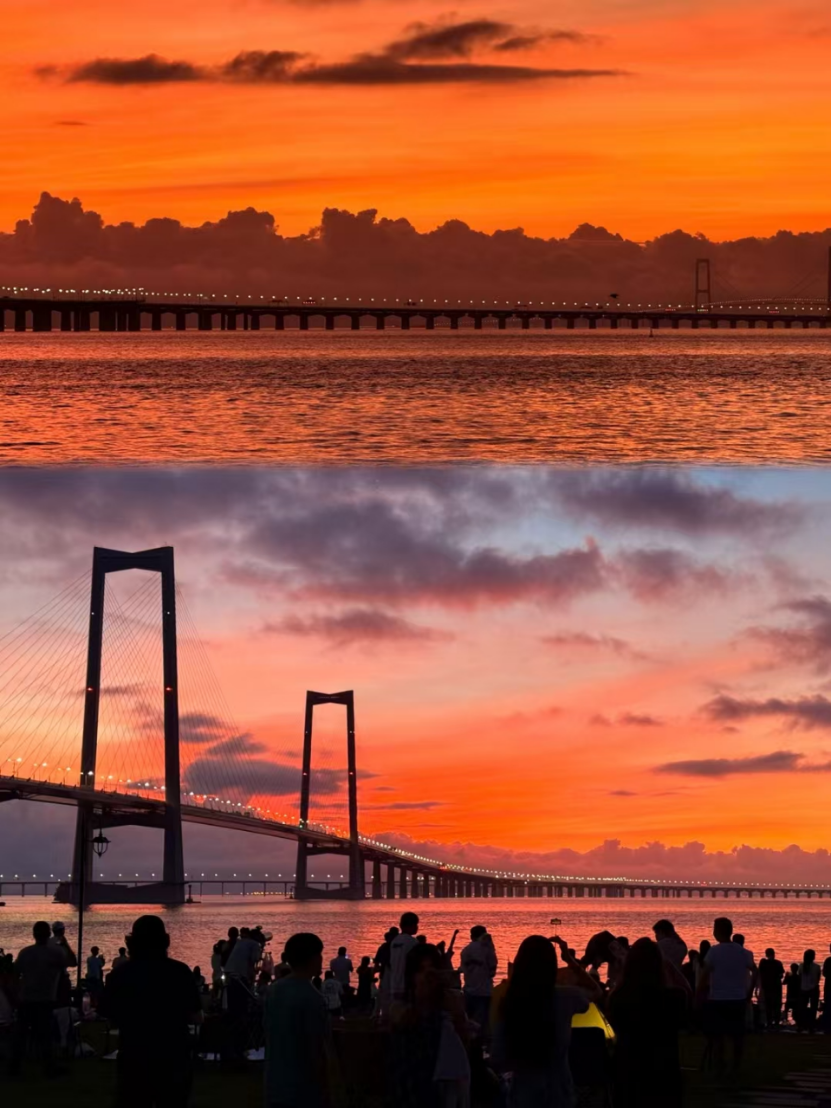 △中山马鞍岛滨海步道远观深中通道与大海同框