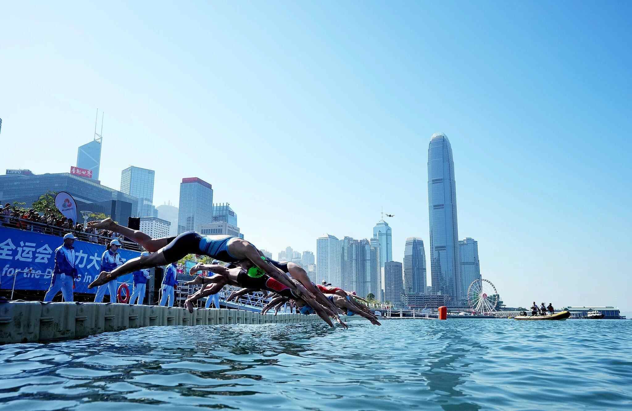 铁人三项的游泳赛段在维多利亚港畔举行,这里既是全球知名的“城市会客厅”,也是考验意志的“魔鬼赛道”。