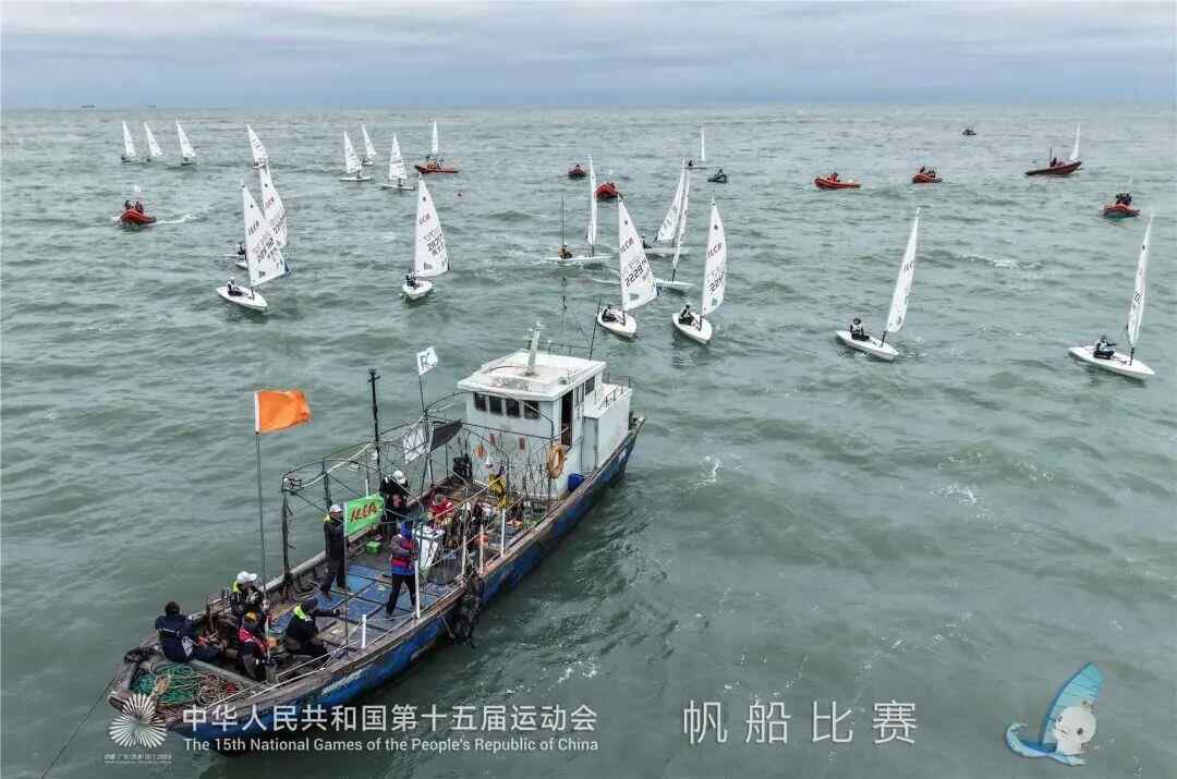 金秋时节,汕尾红海湾海面上白帆点点、海风轻拂,运动员们驾驶帆船在波光粼粼的海面上划出优美弧线。
