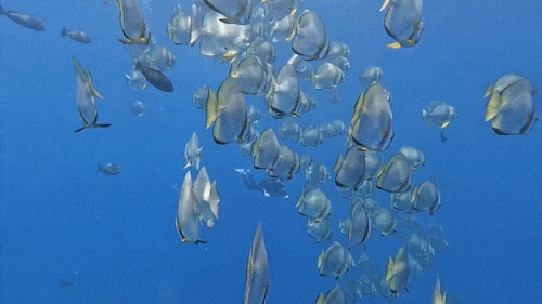 △东澳岛有着“中国十佳潜水目的地”的称号,就算是冬天也能下潜,随时可与鱼群撞个满怀。