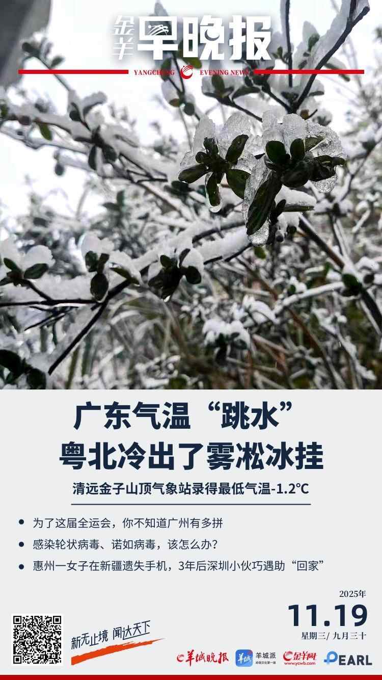 【金羊早晚报】-1.2℃,粤北冷出了雾凇冰挂!广东局地已发寒冷橙警