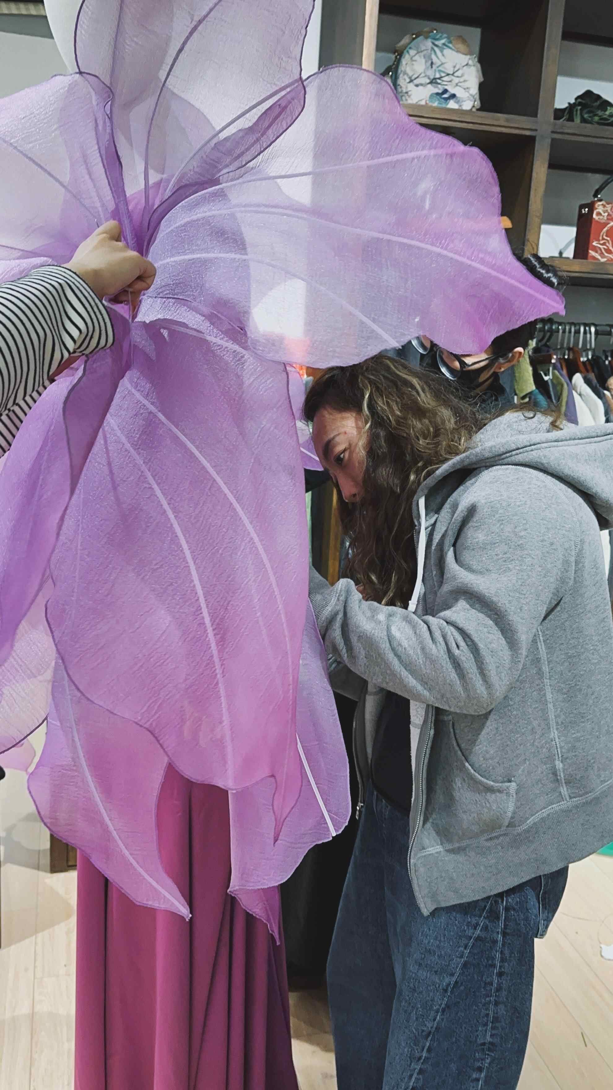 不过,由于家里人多从事服装设计,金泳萱反而想突破局限,探索其他新的领域,但各种各样的因素让这个梦想未能实现。好在艺术训练从未间断,在家人的劝说下,她最终回归艺术赛道。从本科开始,金泳萱正式开启了服装设计的专业学习之旅。如今,她正在清华大学攻读博士学位。这一路她步履不停,从国内到国际,不断拓宽自己的视野与认知。