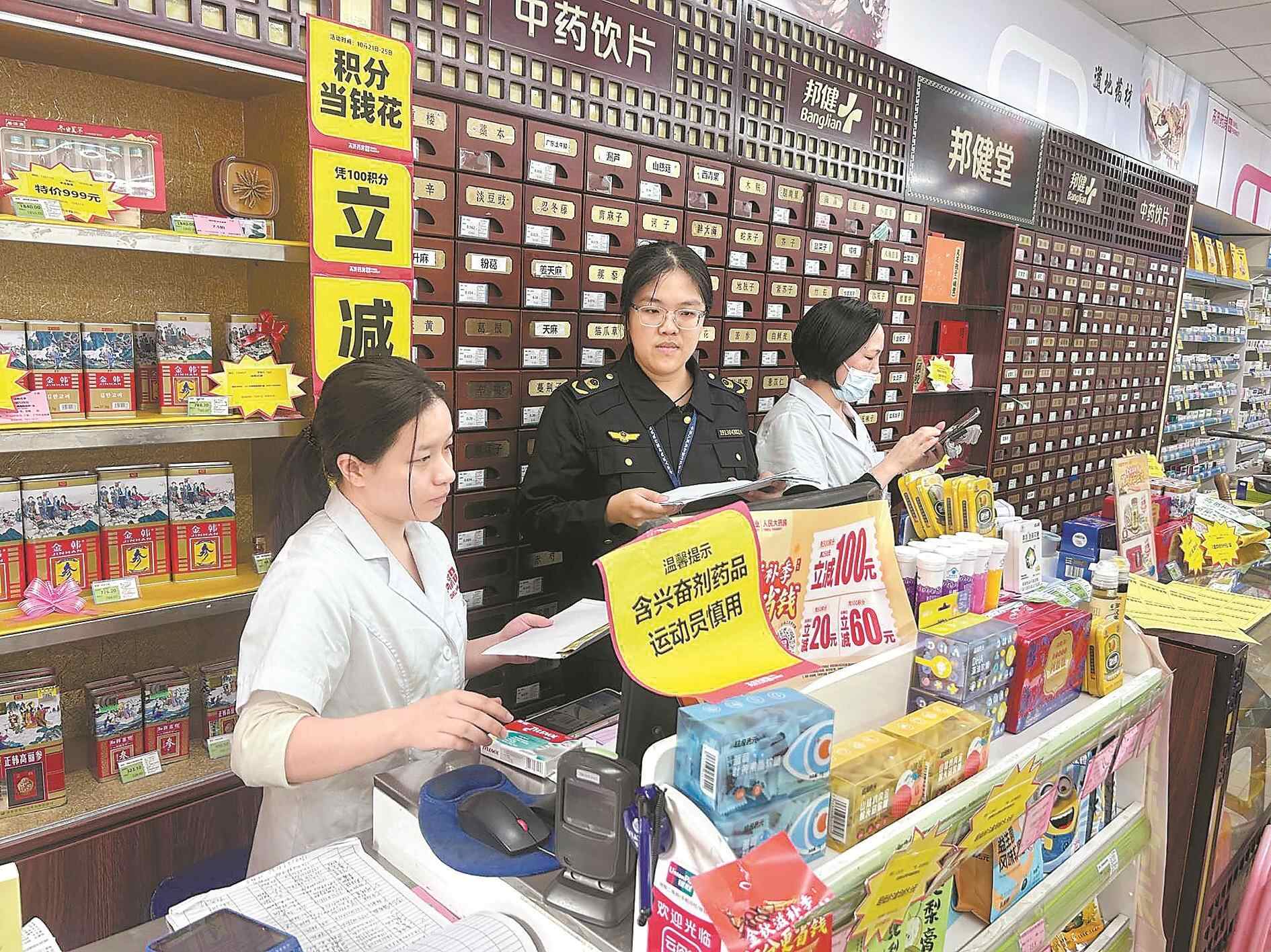 此外,蓬江、台山、恩平市场监管部门履行属地管理责任,对比赛场馆及接待酒店周边2公里内的零售药店进行多轮全覆盖检查,督促指导重点区域内所有药店安装使用“DOP粤药盾”系统(销售人员在销售药品时扫描药品追溯码,计算机系统将自动识别重点品种并显示“药品含有兴奋剂成分,运动员需慎用”弹窗,销售人员必须提示消费者后,方可销售药品),组织药店开展药源性兴奋剂管控自查,在门店入口、收银台等醒目位置张贴宣传海报和“含兴奋剂药品 运动员慎用”的提示语。