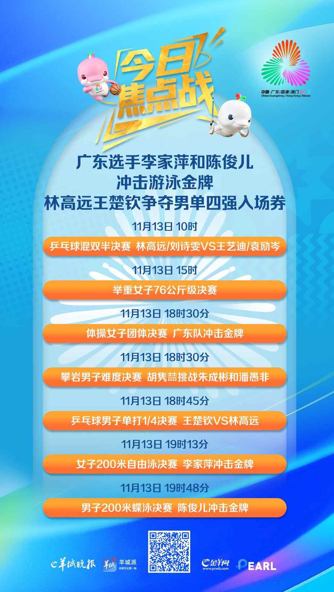 11月13日,十五运会正赛迎来第四个比赛日,运动员们将在游泳、体操、攀岩、举重等项目上角逐27枚金牌。