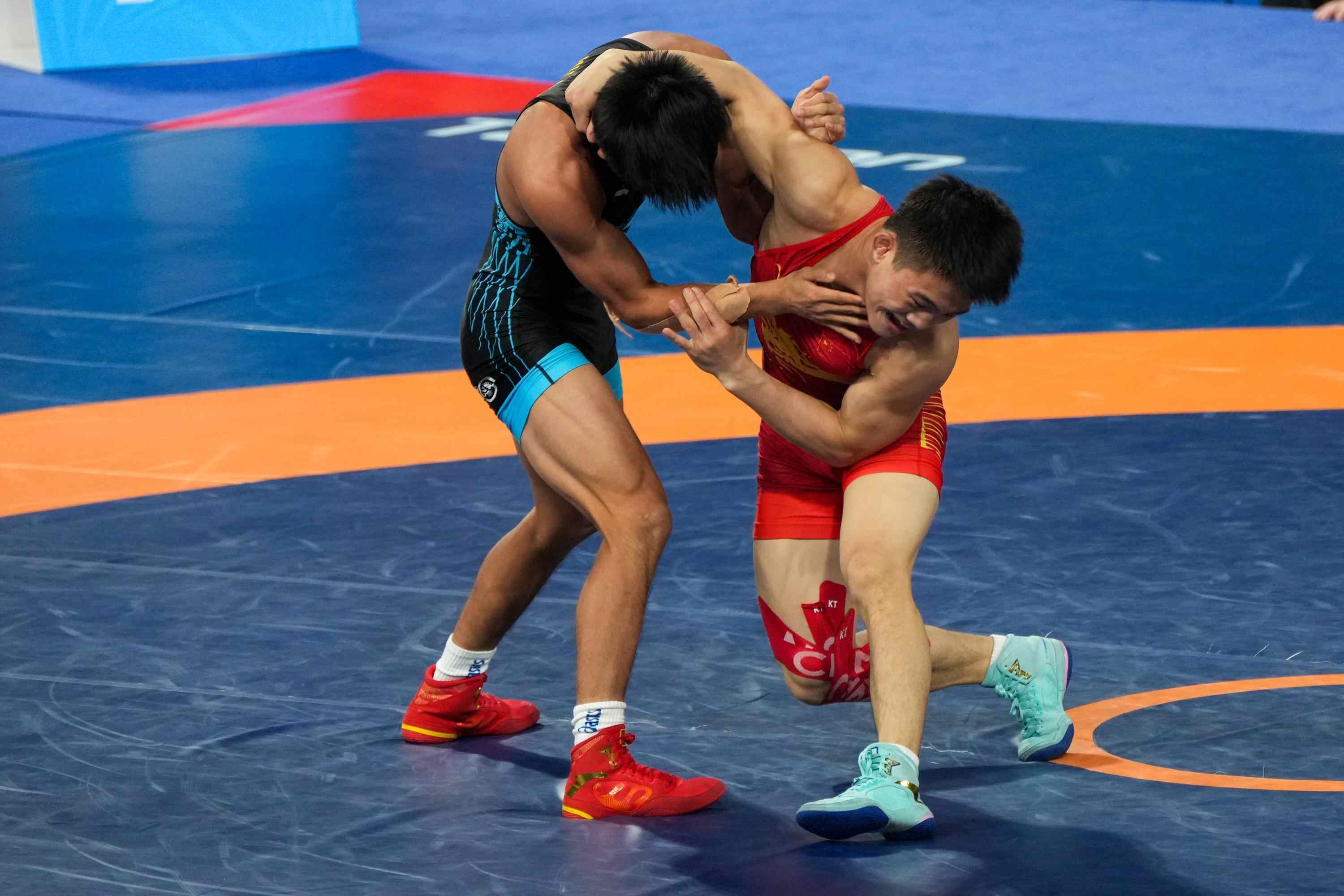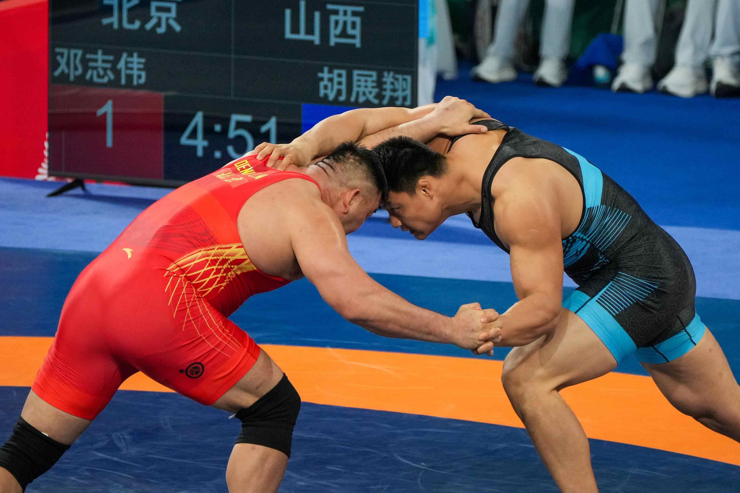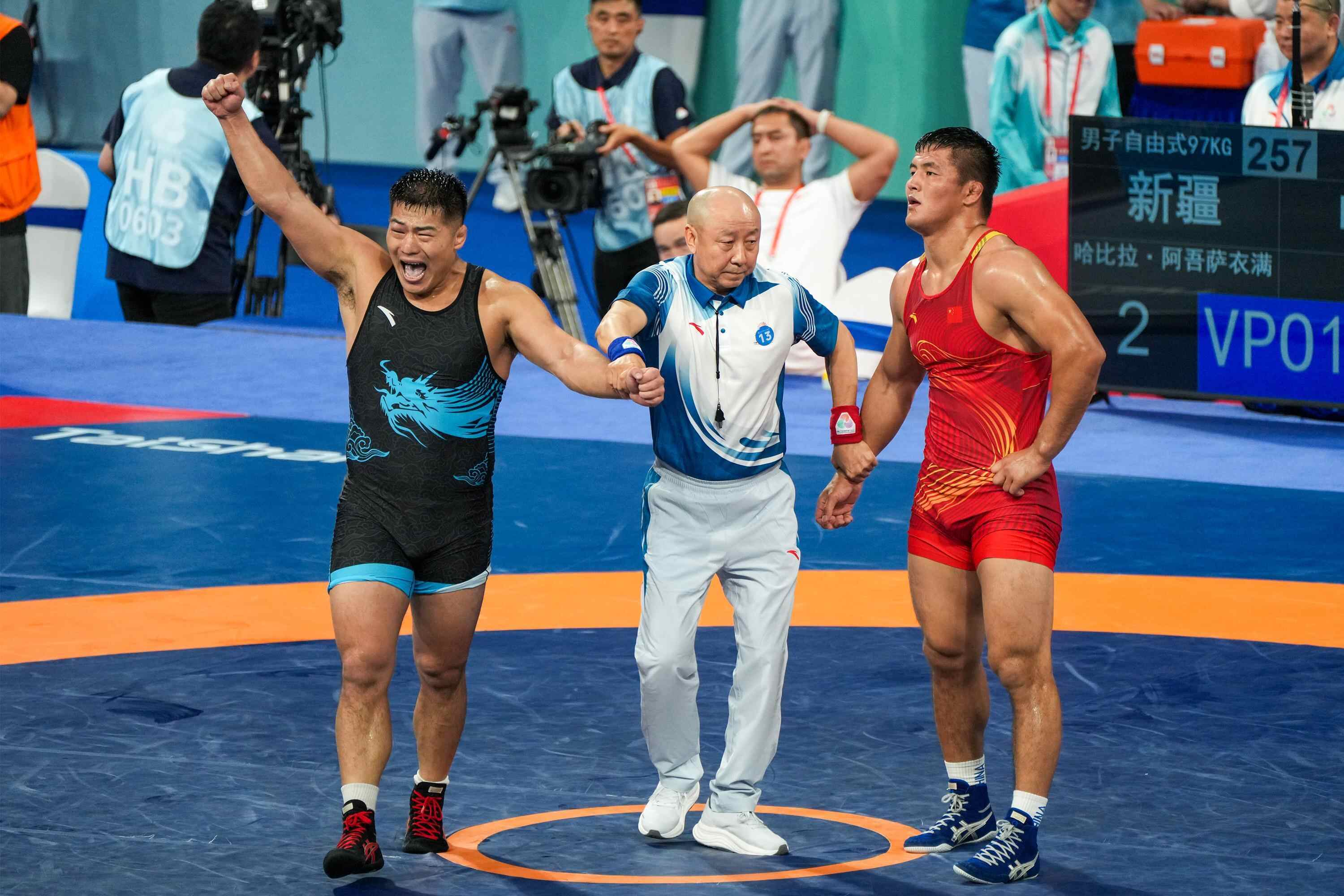 古典式摔跤赛场上,广西队选手、巴黎奥运会亚军曹利国斩获60公斤级金牌,圆梦全运会;江西队黎磊则在67公斤级对决中完成突围夺冠。