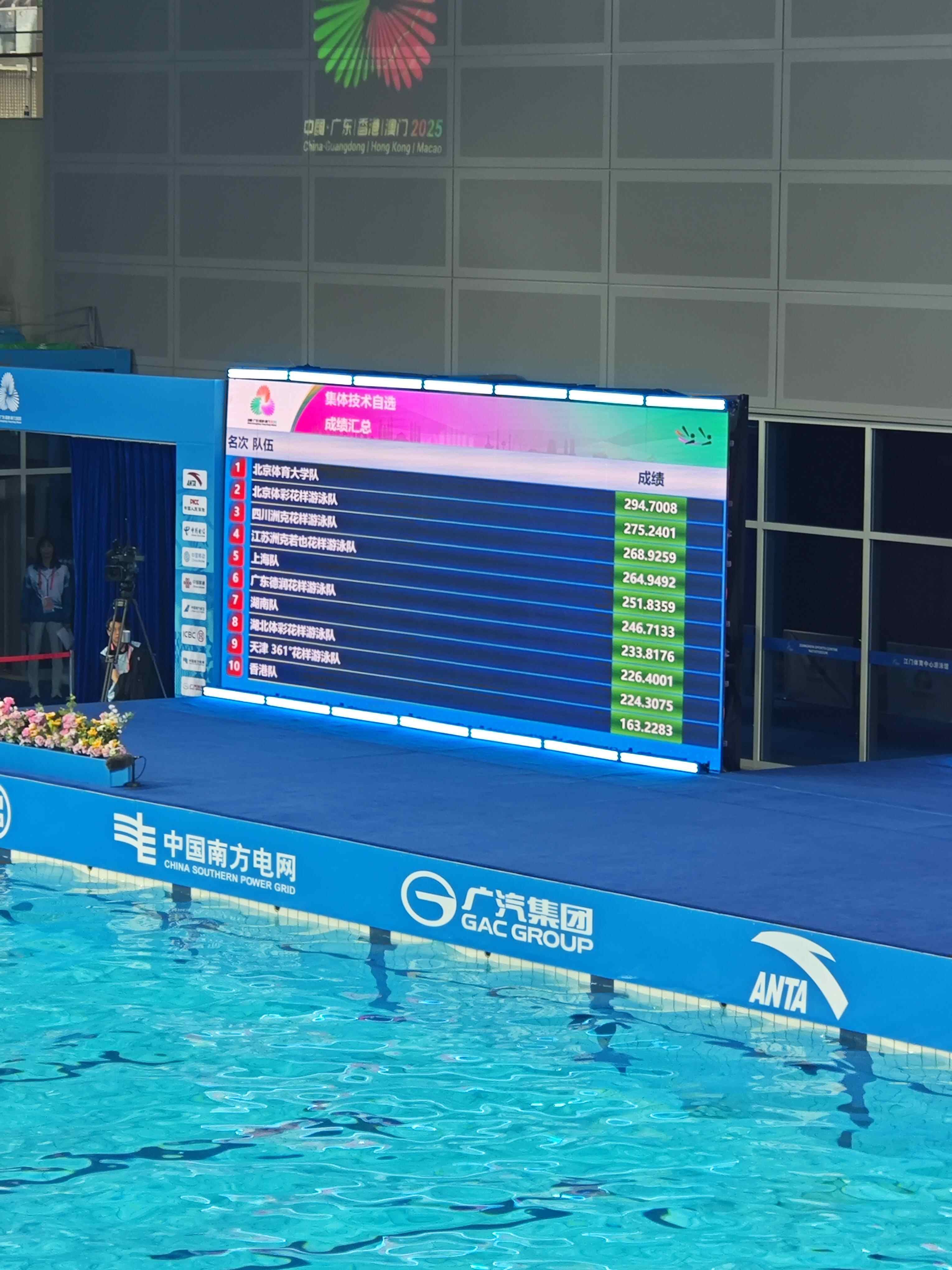 当天12时许,花样游泳“集体技术自选”项目比赛顺利结束。最终,北京体育大学代表队夺得第一名,北京队第二名,四川队第三名。