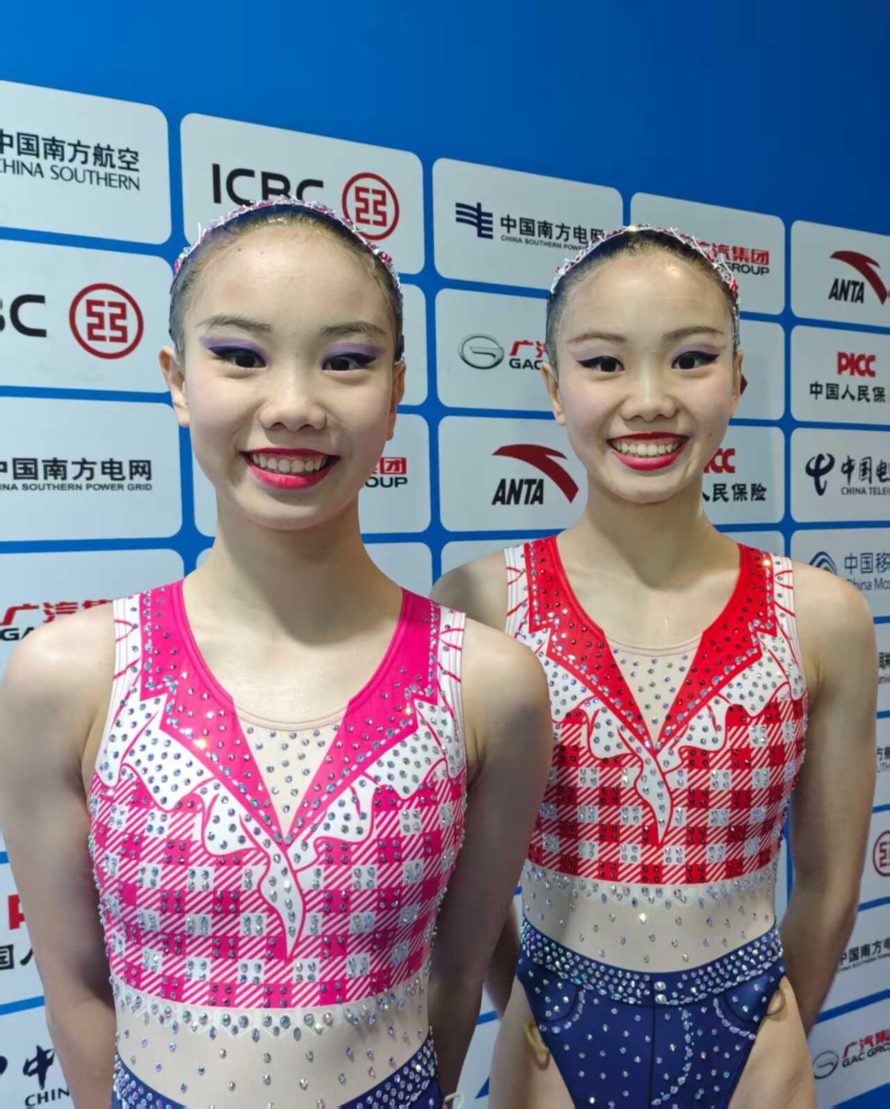“我们对今天的首场比赛表现很满意,我给自己打10分!”在接受羊城晚报记者采访时,来自广东花样游泳队的姐妹花何宇璐、何宇瑶说道。何宇璐、何宇瑶出生于2006年,在8岁时开始接触花样游泳,至今已训练11年。