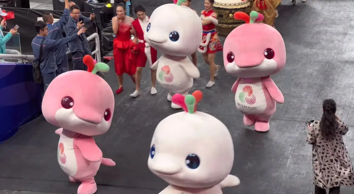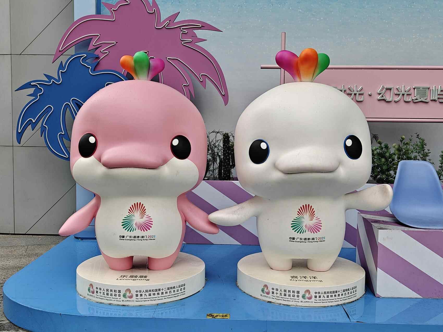 吉祥物的破圈根基,在于深植地域的文化巧思。中华白海豚作为粤港澳大湾区共有的“生态名片”,其群居特性与体育竞技的团结协作精神天然契合,而“喜洋洋”“乐融融”头顶木棉红、紫荆紫、莲花绿的三色水花,更以视觉语言具象化了三地同心的紧密联结。这一设计,将可爱造型、生态文明、地域认同与赛事精神精妙融合,让吉祥物成为可触摸、可感知的文化载体,为其广泛传播开辟了更多可能。