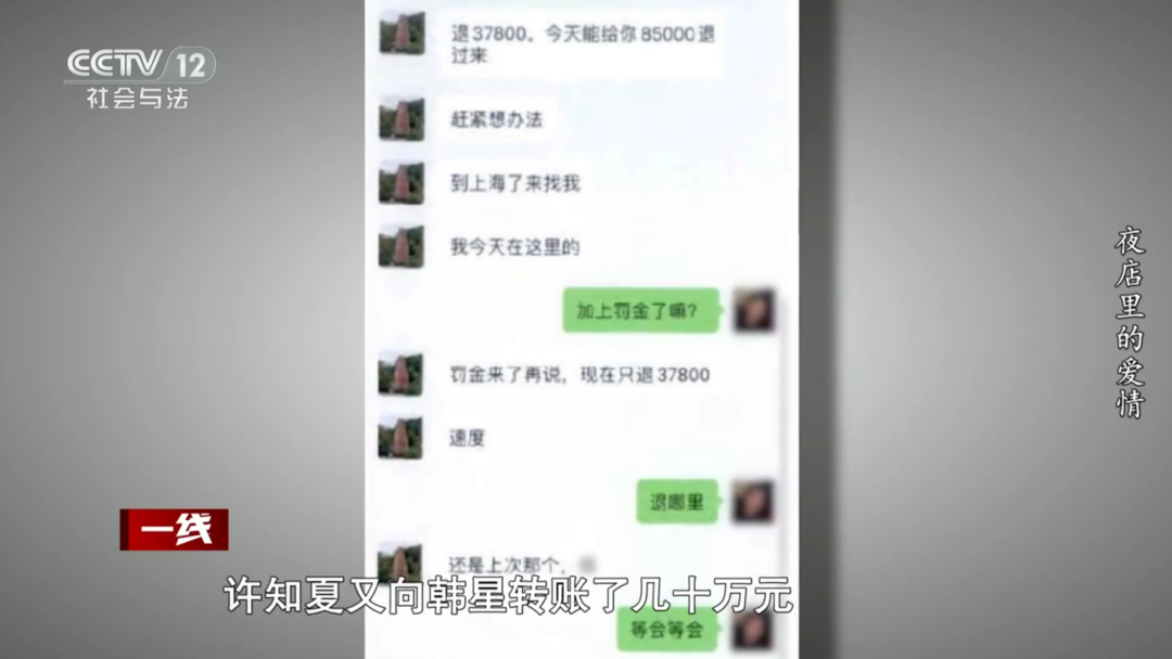 许知夏如今回忆起这件事,也觉得自己当时“魔怔”了,深陷情感绑架的许知夏高频地向韩星转钱,累计金额已达900万元。