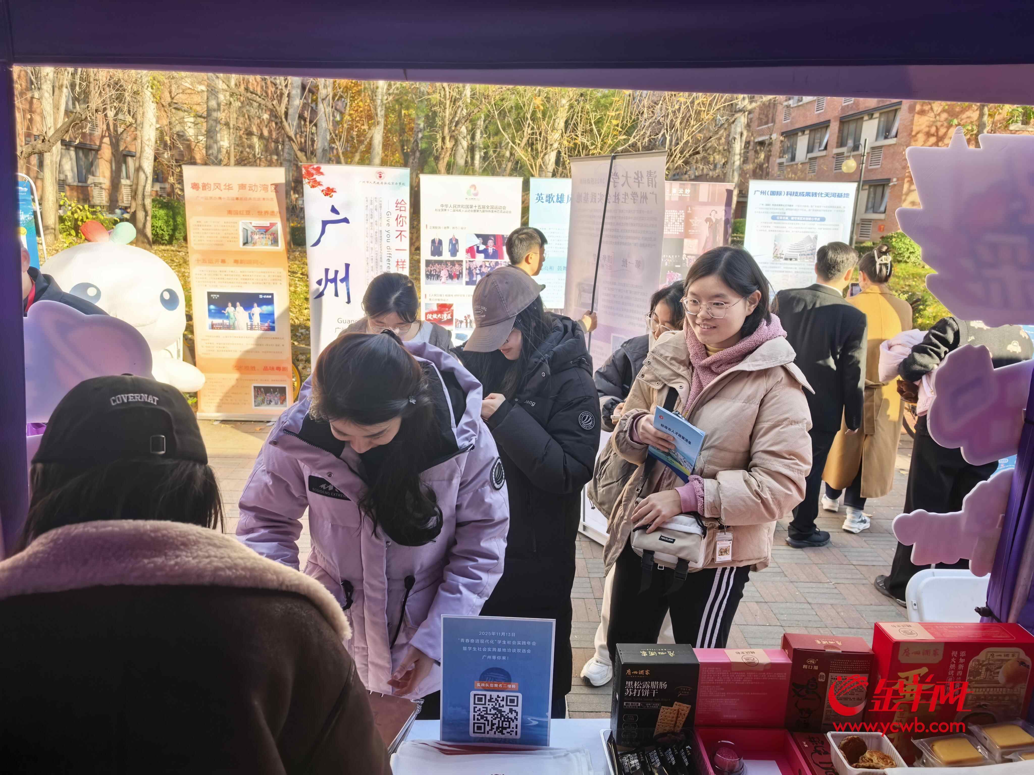 11月13日,作为清华大学学生社会实践基地,广州驻京办受邀参与清华大学2025年学生社会实践年会暨社会实践基地洽谈双选会,围绕“穗悦京彩,青春筑梦”主题开展实习实践洽谈双选及地方特色展示。